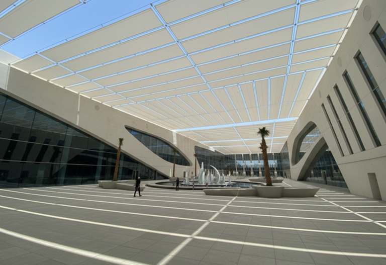 نقوم بتنفيذ وتركيب مظلات الشد الإنشائية (Tensile Tents) باستخدام أحدث الأساليب الهندسية لضمان القوة والمتانة والجمال في التصميم. تشمل عملية التنفيذ: