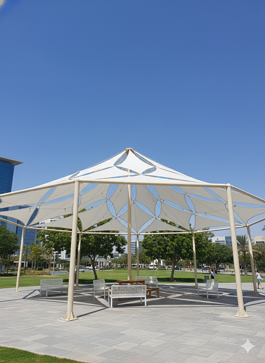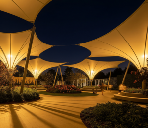 تمثل مظلات الشد الإنشائي القمة في الدمج بين الهندسة المعمارية والجمال البصري، وهي مثالية للحدائق، المنتزهات، الملاعب والمرافق العامة. تصاميمها المرنة تُنفّذ بأنظمة شد عالية الدقة لتغطية مساحات واسعة دون أعمدة داخلية، مع أقمشة مقاومة للحرارة والأشعة فوق البنفسجية والرياح.