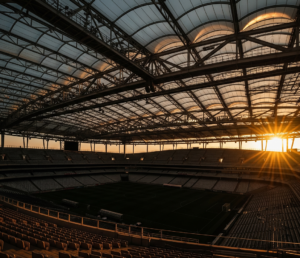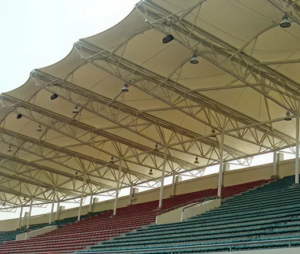 تصمم مظلات الملاعب لتوفير تغطية واسعة تحمي اللاعبين والجمهور من الشمس والعوامل الجوية، مع الحفاظ على وضوح الرؤية وانسيابية التصميم.